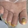実際に拝見すると、爪は白癬(爪白癬)による角質の増殖で分厚くなり、脆く剥がれやすい状態。