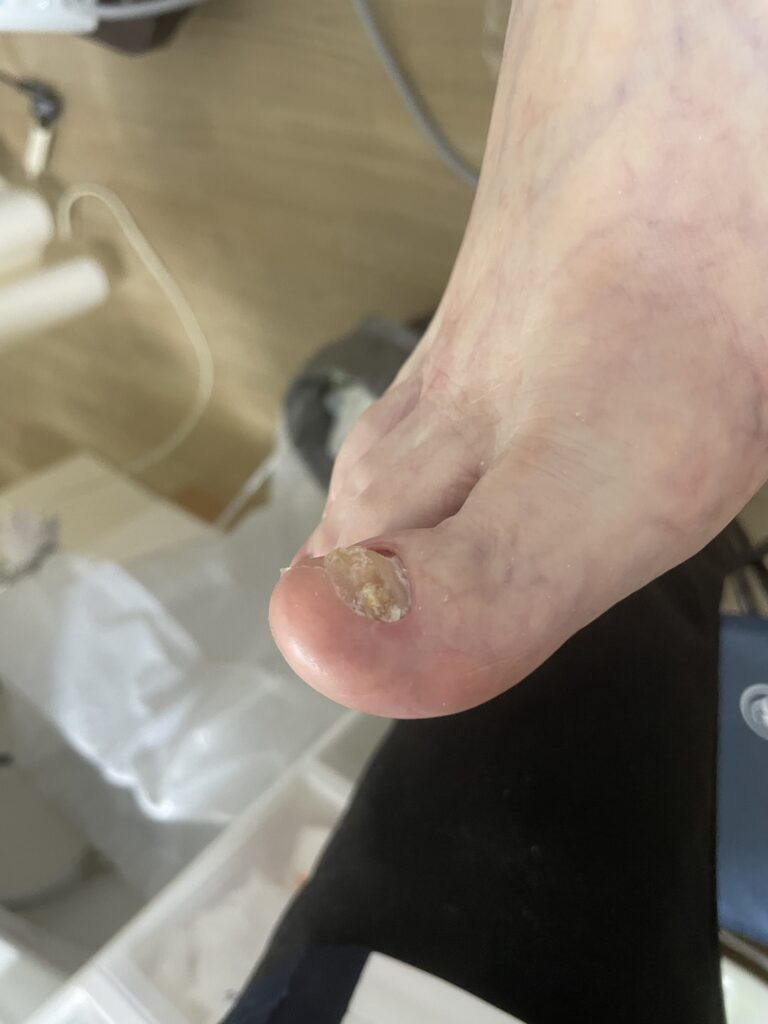 今回は、爪白癬によって爪が厚くなり、靴下に引っかかって困っていた高齢の男性のもとへ、出張でフットケアに伺いました。